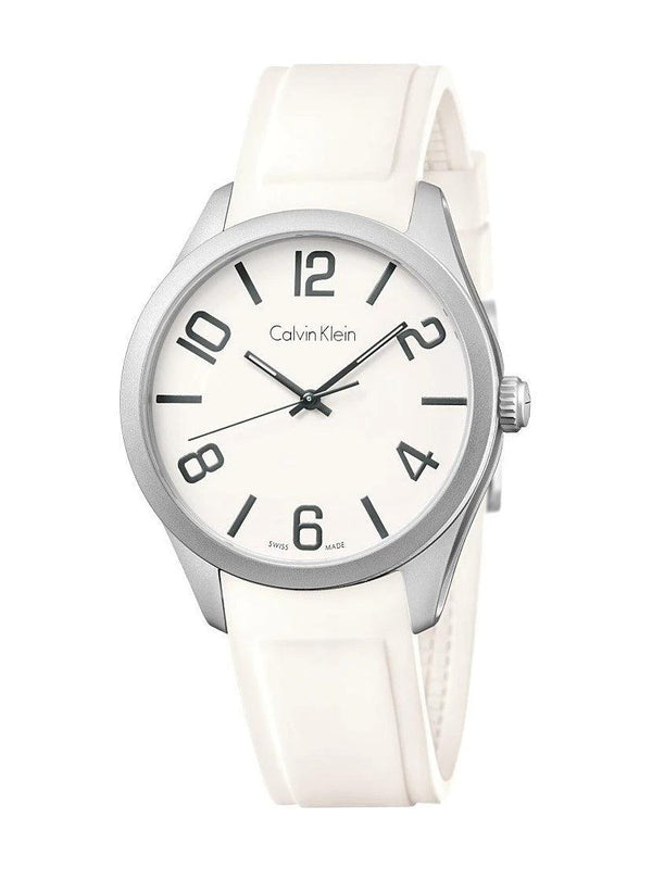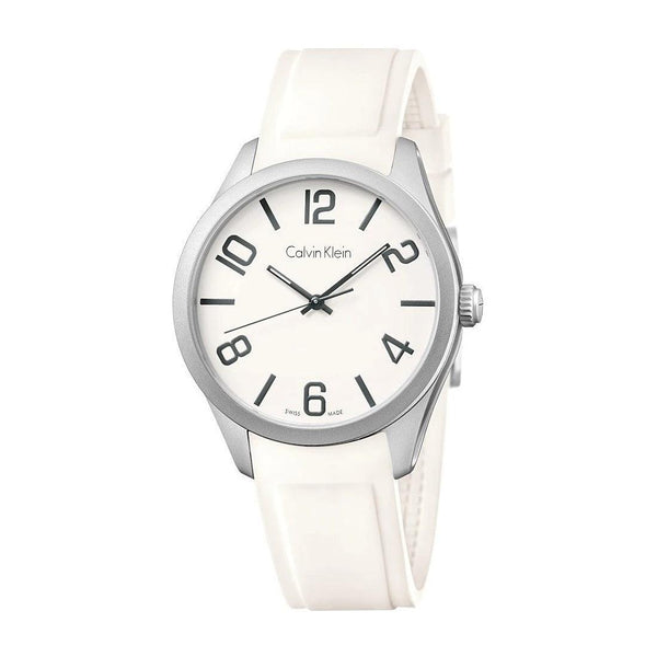 Orologio da uomo Calvin Klein K5E511K2. Orologio analogico con movimento al quarzo, cassa in acciaio inossidabile di diametro 40mm, quadrante bianco, vetro minerale e cinturino in gomma