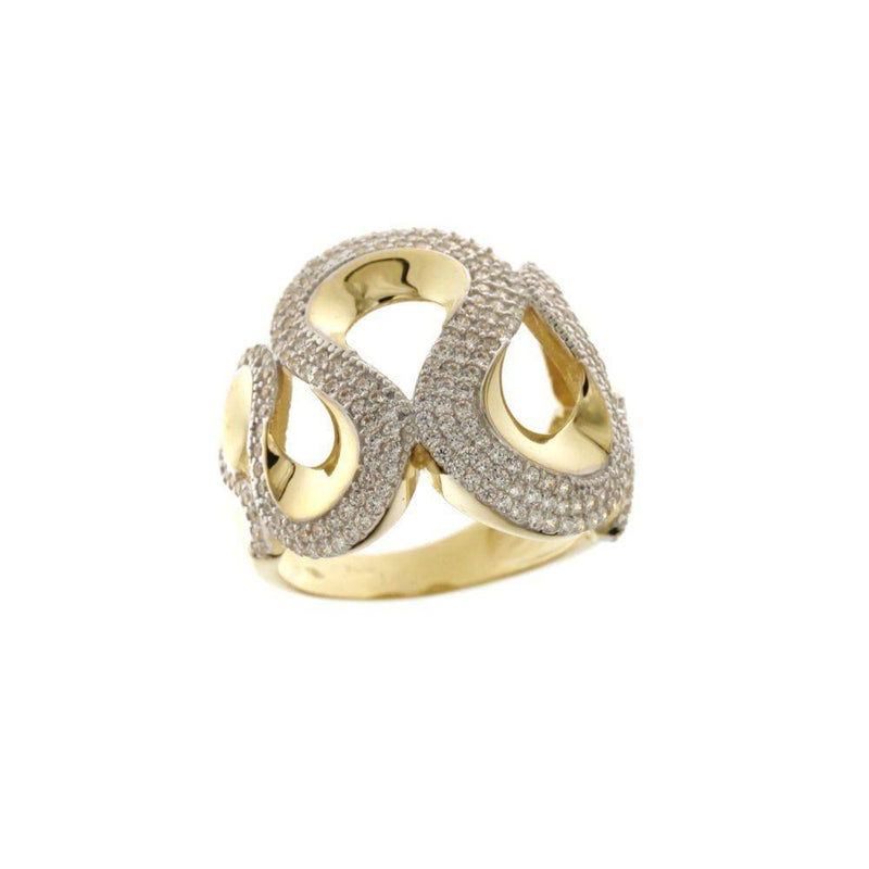 Anello Donna in oro Giallo e Bianco 18 Carati modello Fascione con Greca con Zirconi di 8.30 Grammi.