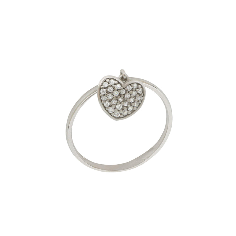 Anello Donna in oro Bianco 18 Carati modello Cuore Pendente di 1.80 Grammi con Zirconi.