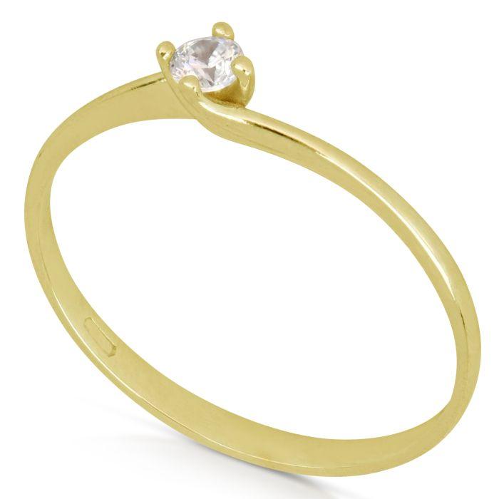 Anello solitario in oro giallo 18 carati con zircone. Pesa 1,30 grammi e la misura è variabile.