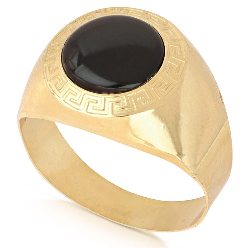 Anello Uomo in Oro Giallo 18 Carati con Onice contornata da motivo greco, di 6.50 Grammi.