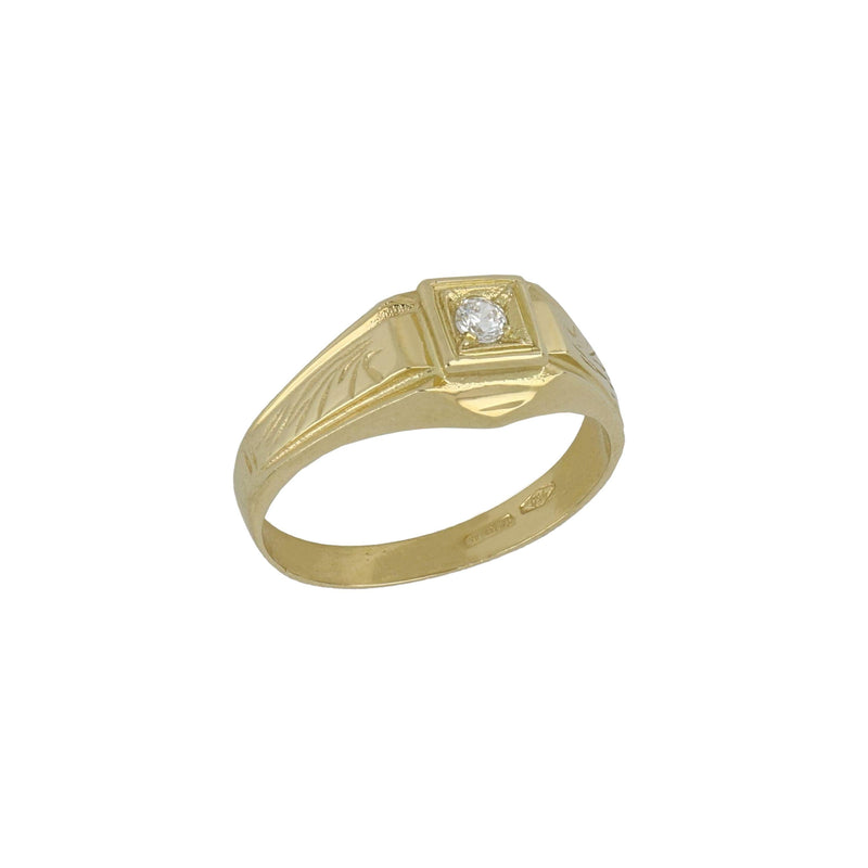 Anello Uomo in Oro Giallo 18 Carati con con Zircone Bianco di 5.50 Grammi.