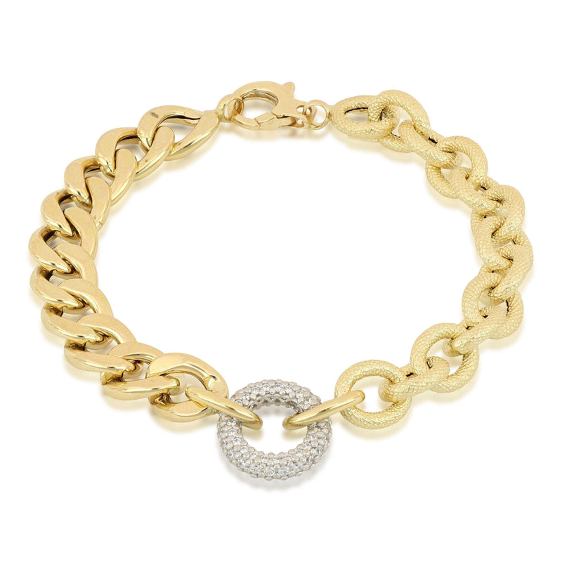 Bracciale a Catena Lucida e Godronata in Oro Giallo 18 Carati di 9.7 Grammi con Zirconi Bianchi. Il bracciale è lungo 20 centimetri.