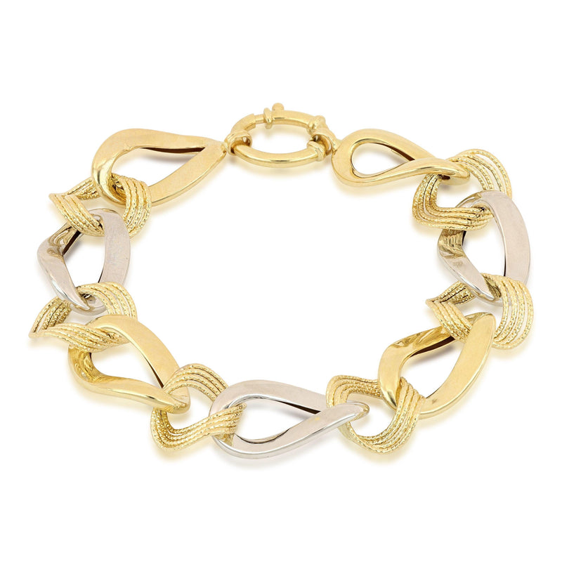 Bracciale a Catena Lucida e Lavorata in Oro Giallo 18 Carati di 11 Grammi. Il bracciale è lungo 21,50 centimetri.