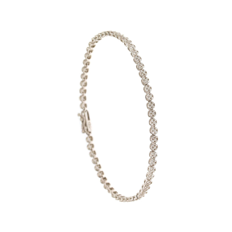 Bracciale modello Magic-Tennis Donna con Zirconi Bianchi, in Oro Bianco 18 Carati di 6.3 Grammi. ll bracciale è lungo 18 centimetri.