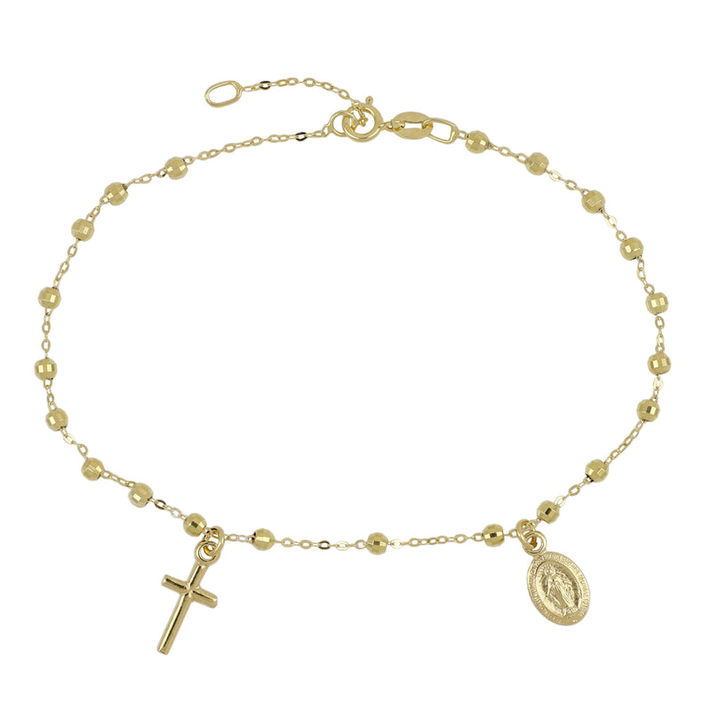 Bracciale Modello Rosario in Oro Giallo 18 Carati con grani Sfaccettati di 2.4 Grammi. Il bracciale è regolabile, da 18 a 20 centimetri.
