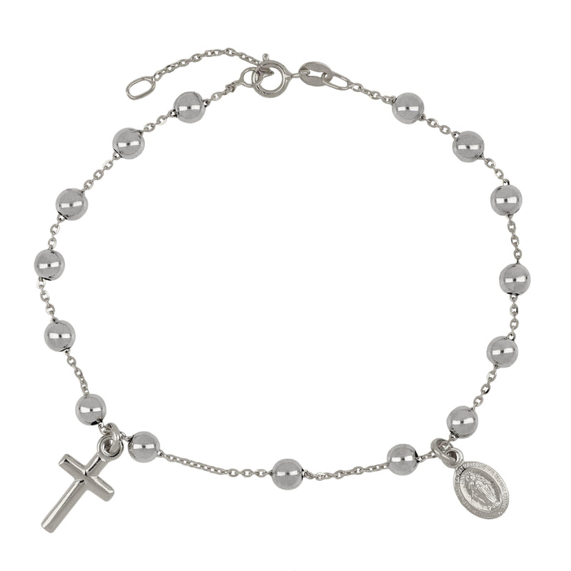 Bracciale Modello Rosario in Oro Bianco 18 Carati con grani Lucidi di 3.30 Grammi. Il bracciale è regolabile, da 18 a 20 centimetri.