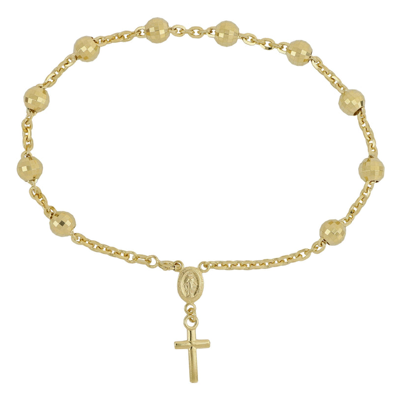 Bracciale Modello Rosario in Oro Giallo 18 Carati con grani Sfaccettati di 9.6 Grammi. Il bracciale è regolabile, da 18 a 20 centimetri.