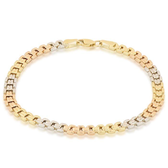 Bracciale da Uomo con Riportini in Oro Giallo, Bianco e Rosa, 18 carati di 4.20 grammi. Il Bracciale è lungo 18cm.