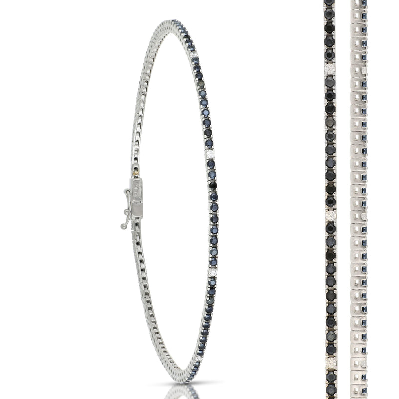 Bracciale Tennis Uomo in Oro Bianco 18 Carati con Zirconi Neri e Bianchi di 6.40 Grammi. Il bracciale è disponibile lunghezza 19 o 16 centimetri.