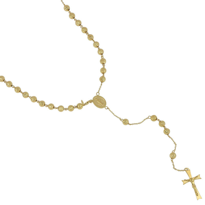 Collana Modello Rosario in Oro Giallo 18 Carati di 11.50 Grammi con grani Martellati di 0,5 centimetri. La collana misura 60 centimetri.