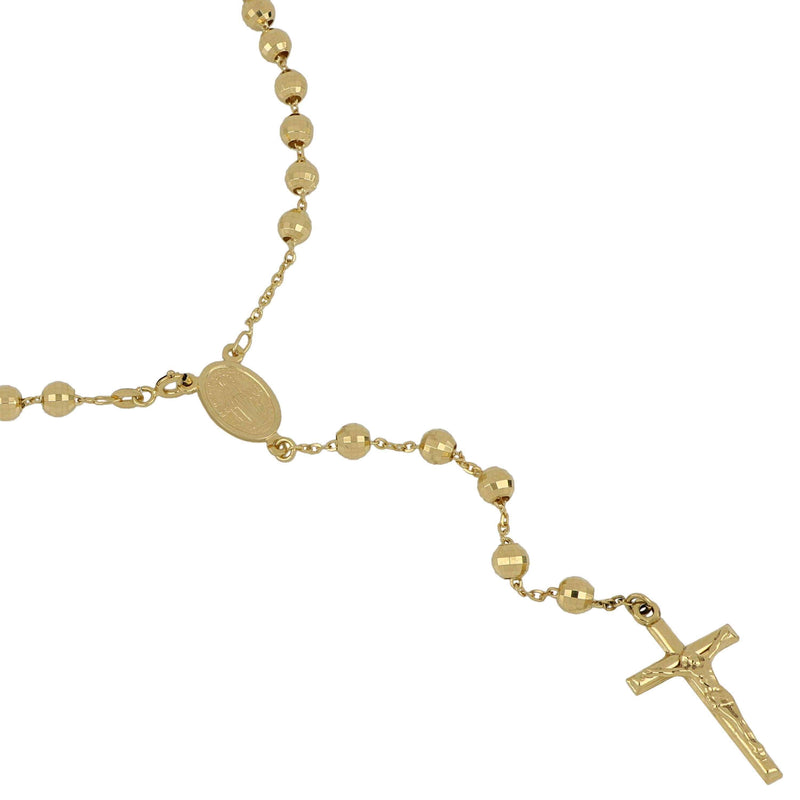 Collana Modello Rosario in Oro Giallo 18 Carati di 21.50 Grammi con grani Sfaccettati di 0,5 centimetri. La collana misura 60 centimetri.