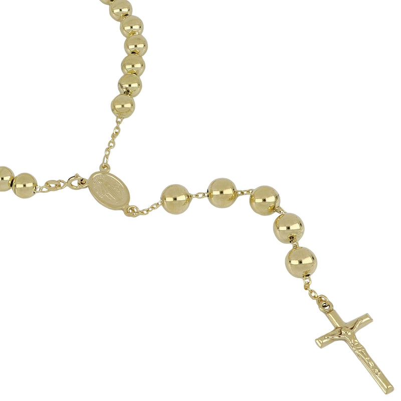 Collana Modello Rosario in Oro Giallo 18 Carati di 24 Grammi con grani Lucidi di 0,7 centimetri. La collana misura 60 centimetri.