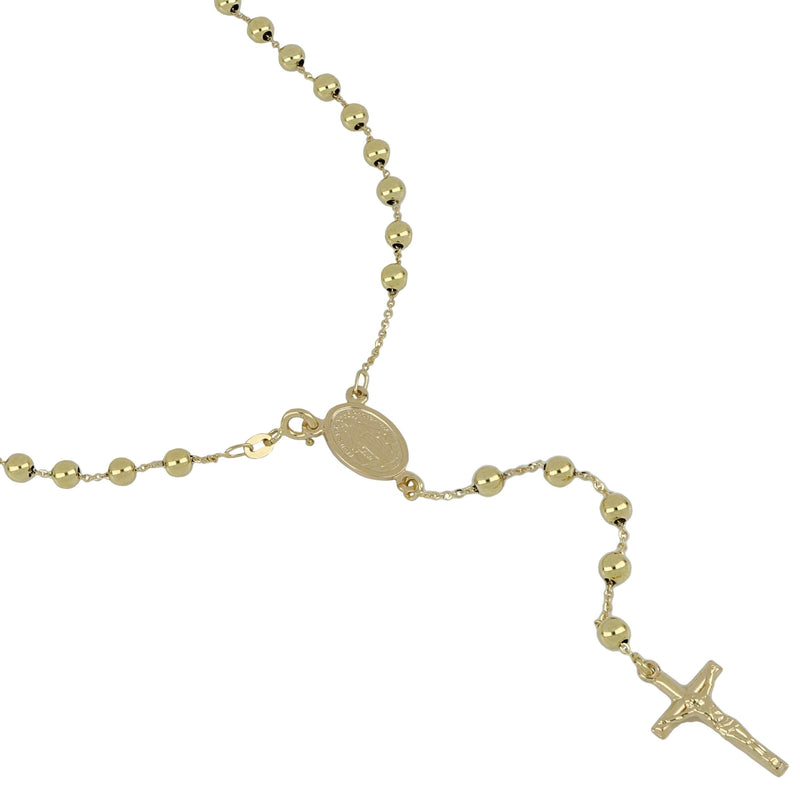 Collana Modello Rosario in Oro Giallo 18 Carati di 8.6 Grammi con grani Lucidi di 0,4 centimetri. La collana misura 45 centimetri.