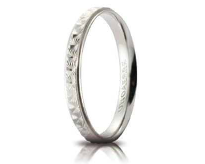 Fedina di fidanzamento "Mimosa" in oro 750 impreziosita da finitura diamantata a fiocco di neve. Gr. 2,00 - Mm 3,00
