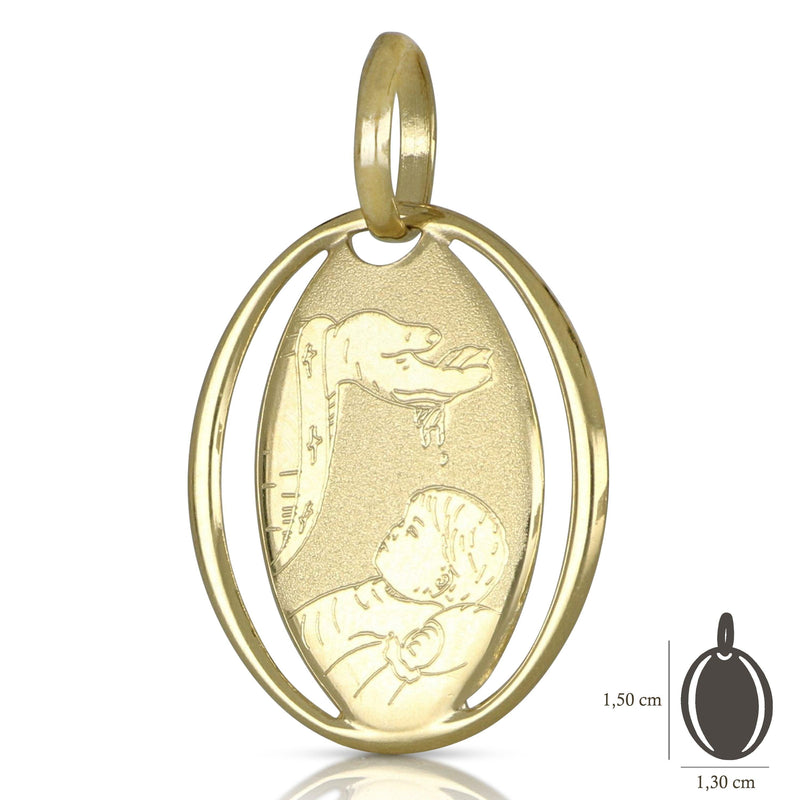 Medaglia Fonte Battesimale in Oro Giallo Lucido e Satinato 18 Carati di 0.70 Grammi.