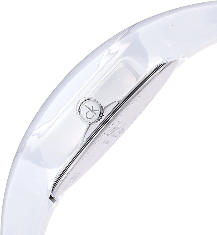 Orologio da donna Calvin Klein K4W2MXK6. Orologio analogico con movimento al quarzo, cassa in acciaio inossidabile di diametro 34mm, quadrante silver, vetro minerale e cinturino in plastica