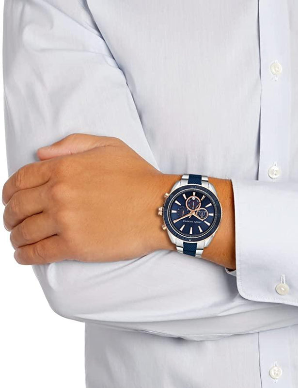 Orologio da polso da uomo Armani Exchange AX1819. Orologio analogico cronografo da uomo con movimento al quarzo, cassa in acciaio inossidabile di diametro 46mm, quadrante nero ed indici a bastone, vetro minerale e cinturino in acciaio.