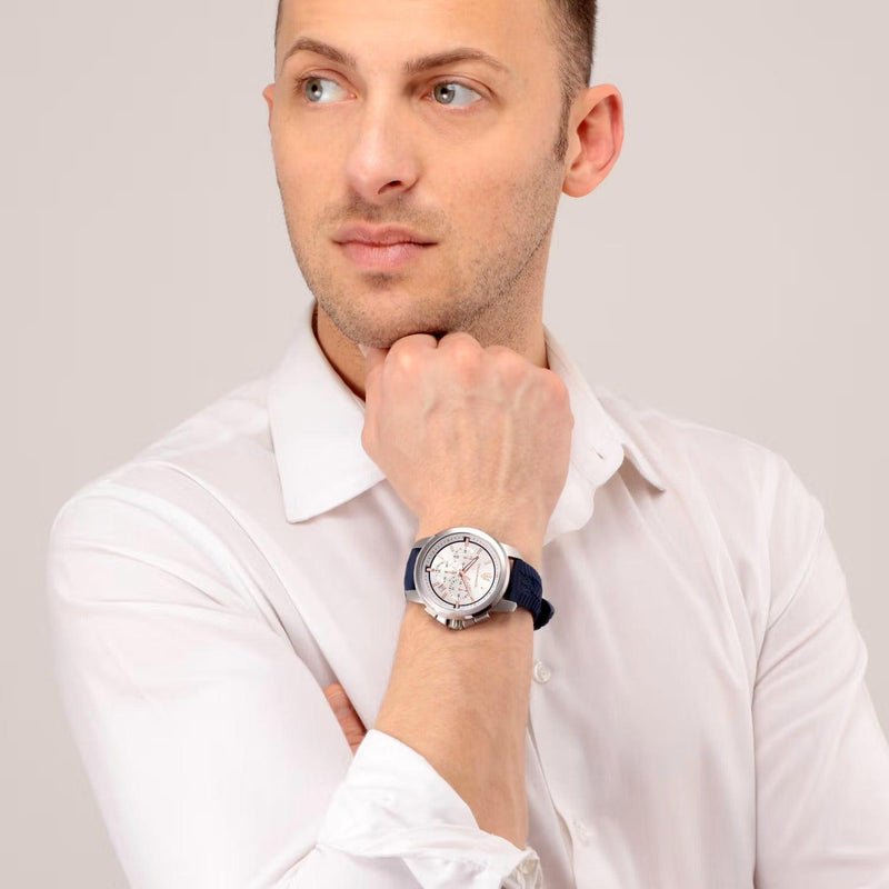 Orologio da polso Maserati R8871621013. Orologio analogico da uomo con movimento al quarzo, cassa in acciaio inossidabile di diametro 44mm, quadrante silver, vetro minerale e cinturino in silicone.