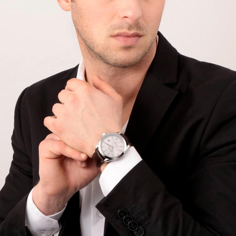 Orologio da polso Philip Watch R8251165047. Orologio analogico da uomo con movimento al quarzo, cassa in acciaio inossidabile di diametro 41mm, quadrante silver, vetro minerale e cinturino in pelle.