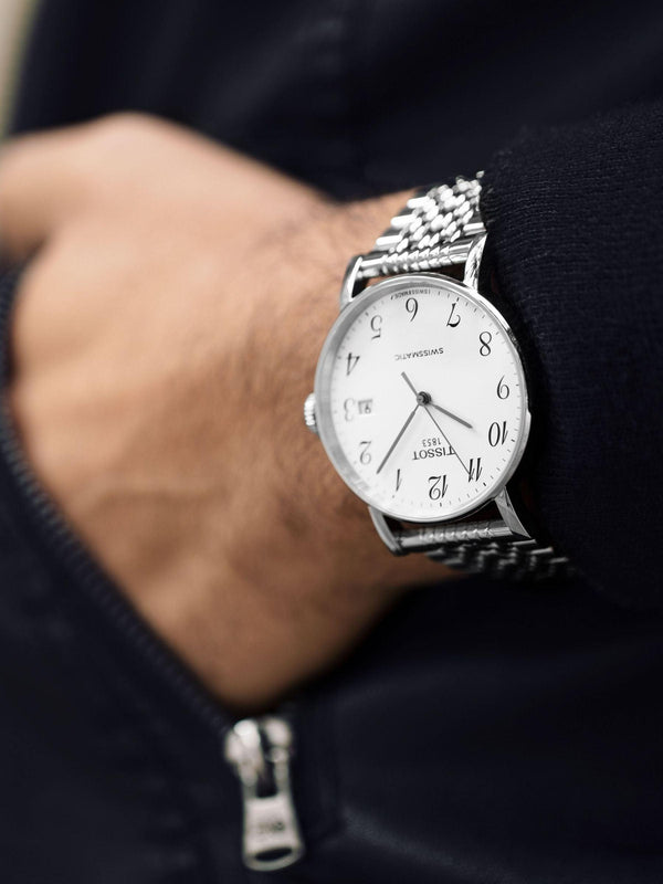 Orologio da polso Tissot T1094071103200. Orologio analogico da uomo con movimento automatico, cassa in acciaio inossidabile di diametro 40mm, quadrante bianco, vetro minerale e cinturino in acciaio inossidabile.