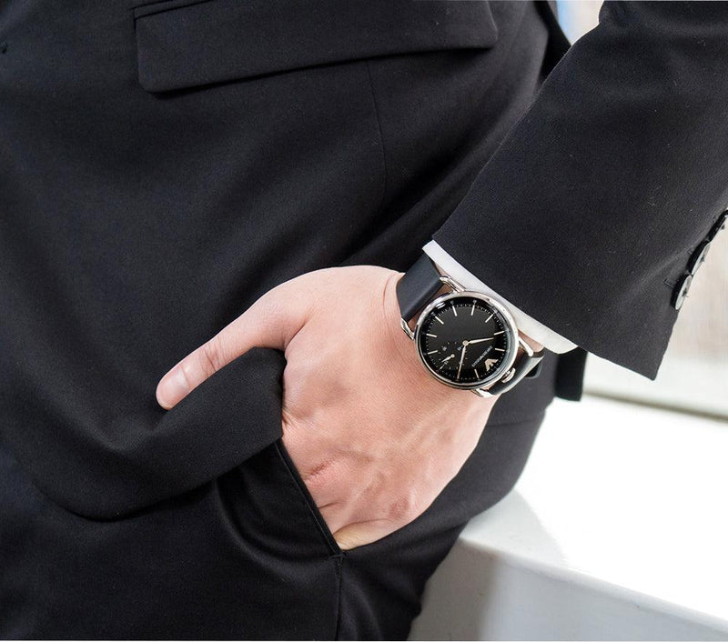 Orologio da polso fashion Emporio Armani AR11336. Orologio analogico da uomo con movimento al quarzo, cassa in acciaio inossidabile di diametro 42 mm, quadrante nero con indici silver a bastoni, vetro minerale e cinturino in pelle.