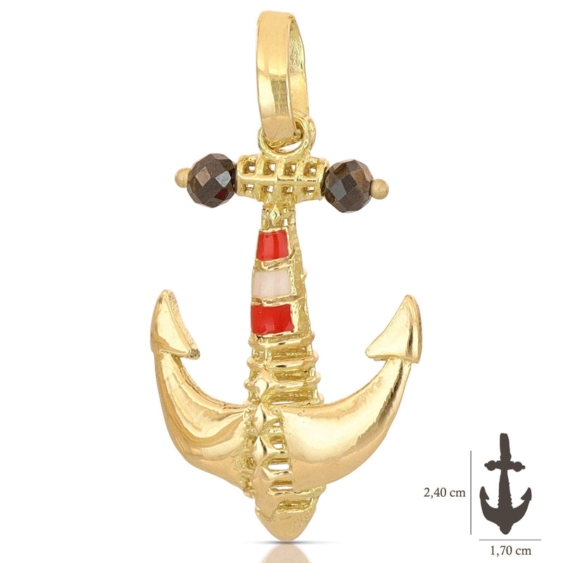 Pendente a forma di Ancora da Uomo in oro giallo 18 carati. Il peso è di 2,6 grammi.